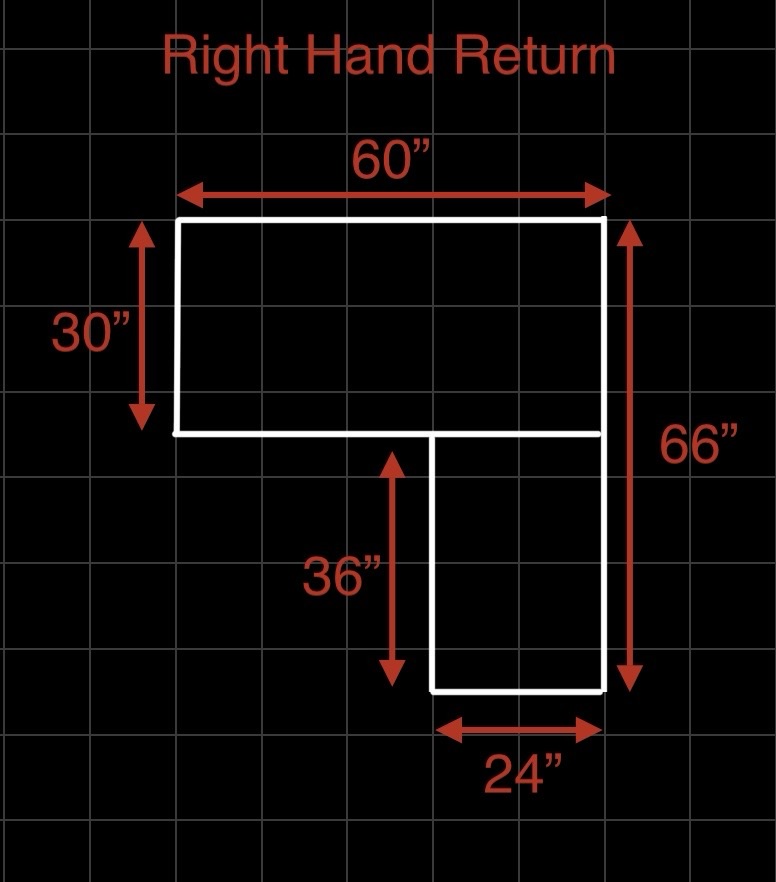 60”x66” Overall measurements. *see sketch above for full dimensions.